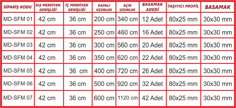 Basamak ölçüleri: 30x30mm tırtıklı profilden üretilmiştir.